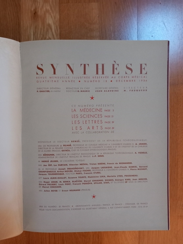 Numéro dédié à la République Tchécoslovaque et à la Faculté de Médecine de Prague. Très belle revue, abondamment illustrée et à la mise en page innovante. Nombreuses publicités, principalement pharmaceutiques. Couvertures un peu poussiéreuses, légères taches. Intérieur très bon.