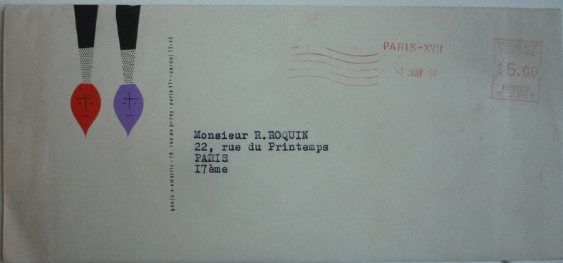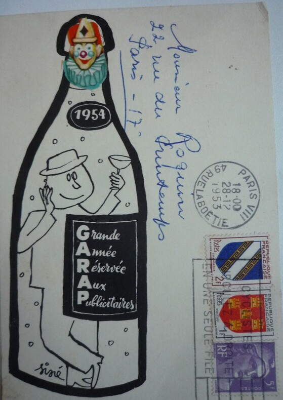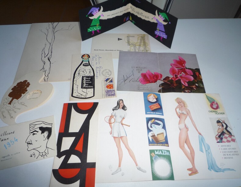 cartes de vœux adressées à Mr Roquin publiciste par des designers, artistes, imprimeurs, etc... pour l'année 1954 9 cartes de formats variés j'ai en stock plusieurs dizaines de cartes de vœux adressées à ce publicitaire entre les années 1948 et 1968, renseignements sur demande, possibilité d’acheter en lot. bon état