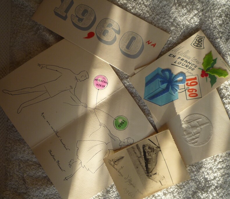 cartes de vœux adressées à Mr Roquin publiciste par des designers, artistes, imprimeurs, etc... pour l'année 1960 5 cartes de formats variés j'ai en stock plusieurs dizaines de cartes de vœux adressées à ce publicitaire entre les années 1948 et 1968, renseignements sur demande, possibilité d’acheter en lot. bon état