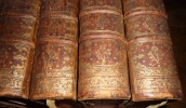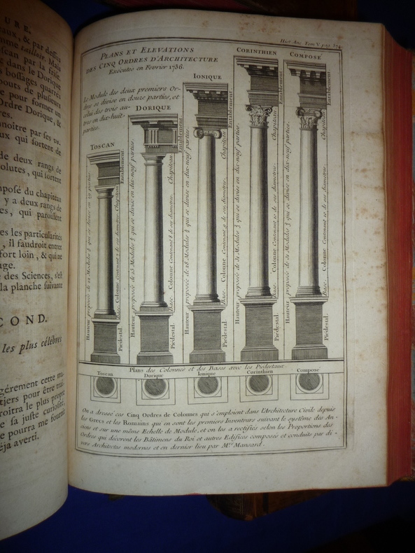 PARIS, chez la Veuve ESTIENNE 1731, 13 tomes en 14 volumes , superbe etat reliure d'epoque veau glacé dos lisse richement decoré avec pieces de titres et de tomaison , et les initiales au bas du dos de l'ancien proprietaire sur tous les tomes : F.G.D.B.illustrations , gravures hors texte (une superbe sur les moyens de communication avec le feu ), cartes depliantes , in 16 , 14 tomes complet , a voir photos sur demande