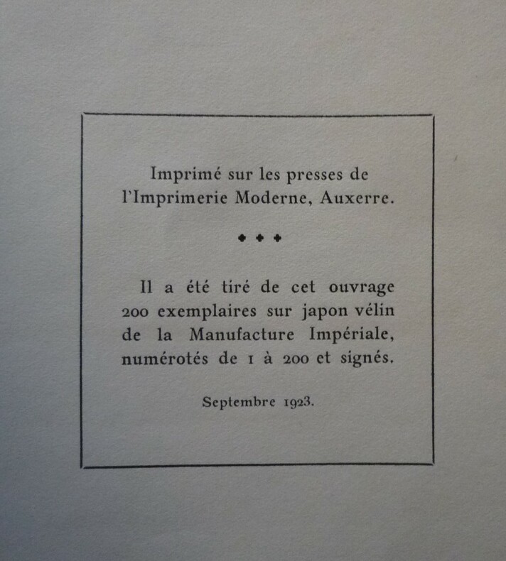 suite de bois gravés plaquette e format : 19 x 24 cm, 6 pages de textes suivies de 10 bois gravés en noir pleine page joint un bois gravé de J. Ducrot numéroté 10/10 imprimé sur les presses de l'imprimerie moderne à Auxerre en septembre 1923 bon état