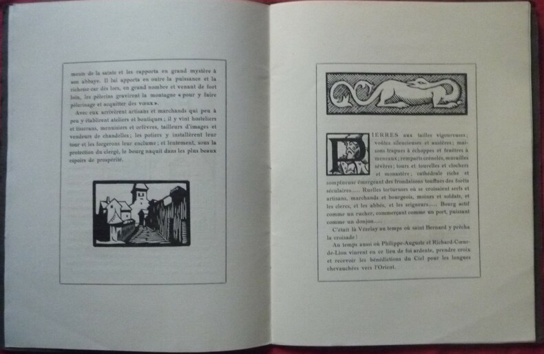 Vézelay Magasin du Pélerin de Vézelay 1930 in-8 broché 1 volume, broché crème grand in-octavo Editeur (paperback in-8 Editor)(23,8 x 16 cm), dos et couverture imprimés en noir, 1ère de couverture illustrée en bleu et noir par Couray, toutes tranches non-rognées (all edges no smooth), Exemplaire du tirage de luxe sur papier couché, orné de 117 planches in et hors-texte en noir, 206 Pages, 1930 Vézelay (Yonne), Magasin du Pélerin de Vézelay Editeur,