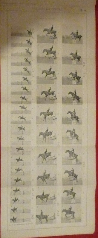 Paris, Berger-Levrautl. 1912. 8°. 94 p. Avec 83 chronophotographies et gravures et 5 séries chronophotographiques complètes des attitudes du cheval aux trois allures. Reliure demi toile à coins framboise, titre doré, couverture conservée.
