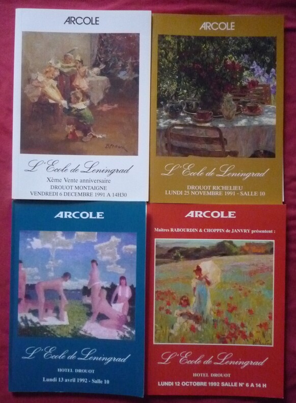 4 catalogues de vente de tableaux faites par Arcole en 1991 et 1992. format 15 x 21 cm, 112, 96, 96 et 96 pages, illustrées de centaines de photos couleurs des tableaux Bon état