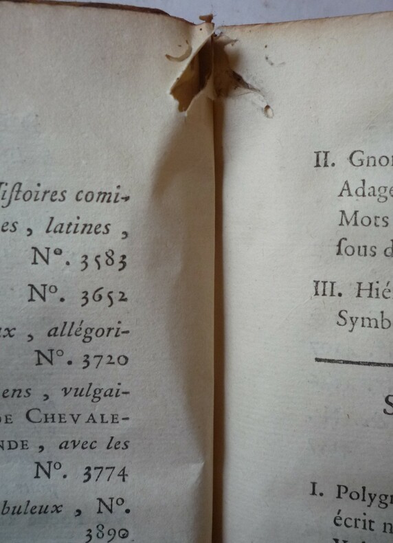 Etat satisfaisant (mq. en coiffe sup. et petit mq. de cuir en plat, coins frottés, mouill. en plan, bon état par ailleurs). L'exemplaire est bien complet de la "Lettre a M*** servant de Réponse à un Critique de la Bibliographie Instructive, insérée dans le premier Volume du mois de juillet 1763, du Journal de Trévoux, page 1617" et de "l'Appel aux Savans et aux gens de Lettres au sujet d'une troisième critique du R.P. Mercier, Chanoine régulier, Bibliothécaire de Ste Geneviève, contre la Bibliographie Instructive".