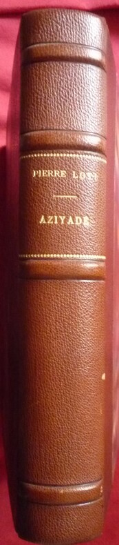 Exemplaire revêtu d'une délicate reliure du temps. ''Le XXe siècle finissant,les élites européennes s'abandonneront avec délice aux charmes d'un Orient érotisé et scintillant, alors même que l'Empire Turc, essoufflé et englué dans la corruption, vit avec faste et nonchalance ses dernières heures. Aziyadé est une grande histoire d'amour tragique... L'auteur y relate le souvenir de la passion qui l'unit à Aziyadé, jeune femme appartenant au harem d'un dignitaire turc. Loti, alors jeune et sémillant lieutenant de la marine anglaise aperçoit, derrière les barreaux d'une fenêtre de harem, le visage d'Aziyadé, belle et jeune odalisque aux yeux verts. Dès lors, il ne vit plus que pour elle. « Aziyadé est âgée de dix-huit ou dix-neuf ans, elle est capable de prendre des résolutions extrêmes et de les suivre coûte que coûte, jusqu à la mort... »Leur liaison amoureuse, née au milieu des parfums et des mystères de l'Orient, culminera à Stamboul (quartier de Constantinople) dans le déchirement et le sacrifice. Loti quitte par amour la marine anglaise et entre au service de la Turquie le 10 mai 1876. Il est tué dans les murs de Kars le 27 octobre 1877...'' Rares rousseurs affectant les premiers et derniers feuillets. Quelques tâches claires en marge du premier feuillet de texte. Du reste, très belle condition.