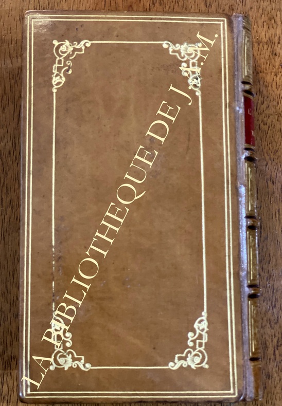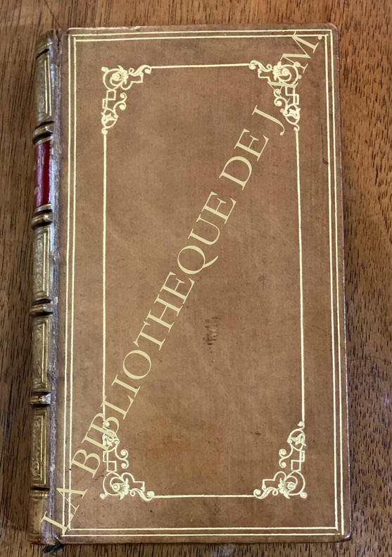 In-12, plein cuir fauve, double filets et fleurons dorés, sur les plats, dos à nerfs pièce de titre doré sur maroquin rouge caissons rehaussés de fleurons dorés, tranches marbrées gris bleu.Intérieur frais. Nicolaum Pepingué. Paris Belle édition parisienne, du temps de l'auteur.