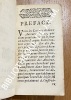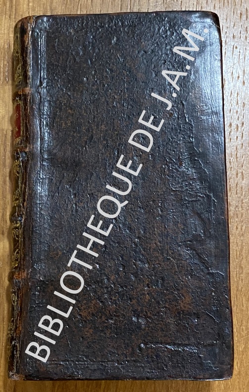 Édition originale, petit in-12 (14cmx8cm), plein veau marbré, dos à cinq nerfs, titre et caissons richements ornés, dos restauré, toutes tranches marbrées, quelques rousseurs, manque de papier page 192 en marge intérieur, 304pp. Londres.
