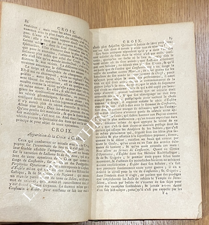 "Debeamus amando corripere, non nocenti aviditate sed studio corrigendi" (S. Aug. serm. XVI de verbo Domini) (Traduction : « Nous devons corriger en aimant, non par une avidité de nuire, mais par le désir de corriger » – citation de saint Augustin, Sermon XVI sur la parole du Seigneur, soulignant l'esprit bienveillant de l'ouvrage). Auteur Abbé François-Marie Coger (1723-1780) Prêtre, professeur de rhétorique au collège Mazarin (Collège des Quatre-Nations) à Paris, apologiste catholique virulent contre les philosophes des Lumières. Coger est l’auteur incontesté de cette édition (attribution confirmée par BnF, Brunet, Quérard, et catalogues de ventes).