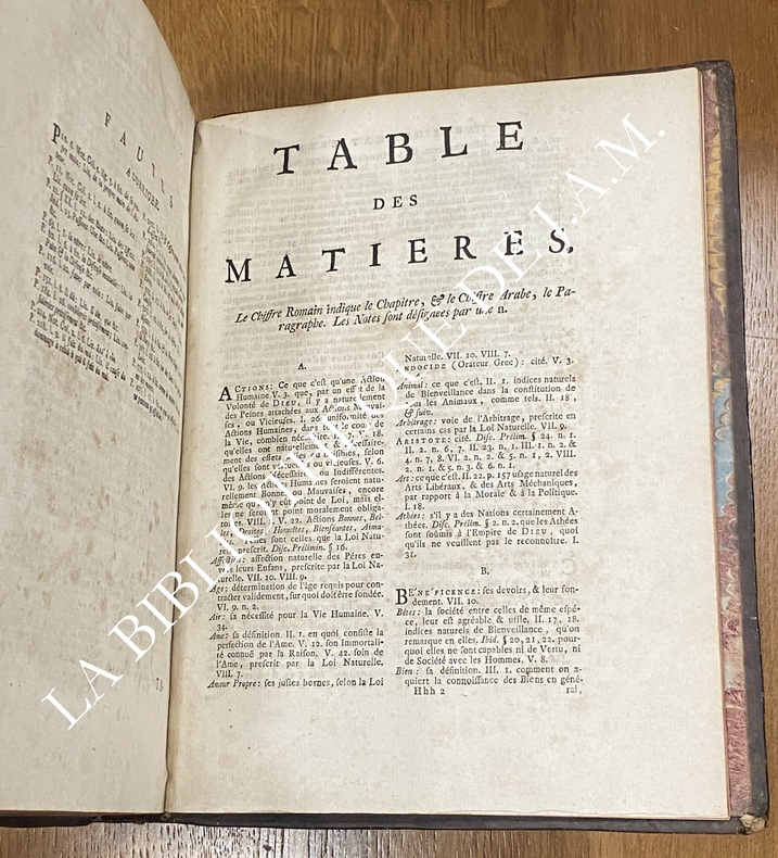 In-4° (environ 25 × 20 cm).Reliure : Plein cuir marbré d’époque veau brun marbré, dos à cinq nerfs orné fleurons dorés, tranches rouges usure naturelle : coins émoussés, Pagination : Environ 476 pages + index + notes (impression nette sur papier vergé). Gravure : Sans frontispice (conforme à cette édition ; vignette ornée sur le titre). PIERRE MORTIER. AMSTERDAM.