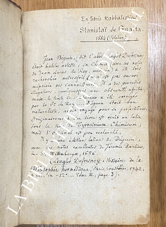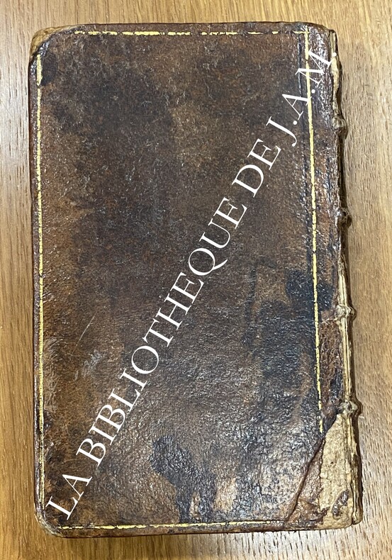 Ultime édition format in-12, reliure de l'époque, plein cuir dos à cinq nerfs, page de faux titre manuscrite et signée Péladan, 384p. plus table, deux livres en un volume, rousseurs éparses, manques aux coins et au dos. Coiffes absentes, cependant ensemble bien réglé.