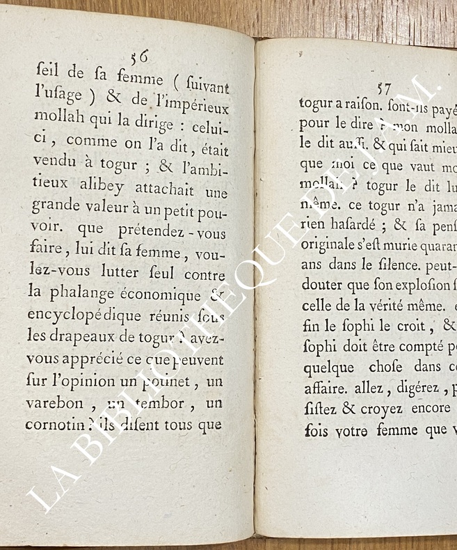 Futur Louis XVIII (1755-1824), alors qu’il était frère de Louis XVI. C’est un pamphlet politique à clef anonyme, écrit en 1776 et publié pour la première fois en 1777. Le texte circule d’abord en manuscrit avant d’être imprimé sous ce titre oriental pour masquer l’origine française et éviter la censure. Satire politique à clef contre Turgot et les physiocrates (1776), imprimée clandestinement sans date ni adresse réelle (« À Ispahan » = Paris). Texte vif et rare, témoignage de l’opposition nobiliaire aux réformes de Louis XVI. Turgot = réformateur courageux mais isolé, symbole de l’échec des Lumières économiques sous l’Ancien Régime. Physiocrates = première école économique française, précurseurs du libéralisme, mais limités par leur vision agriculture centrée. Ce pamphlet = arme satirique de la noblesse contre ces réformes.