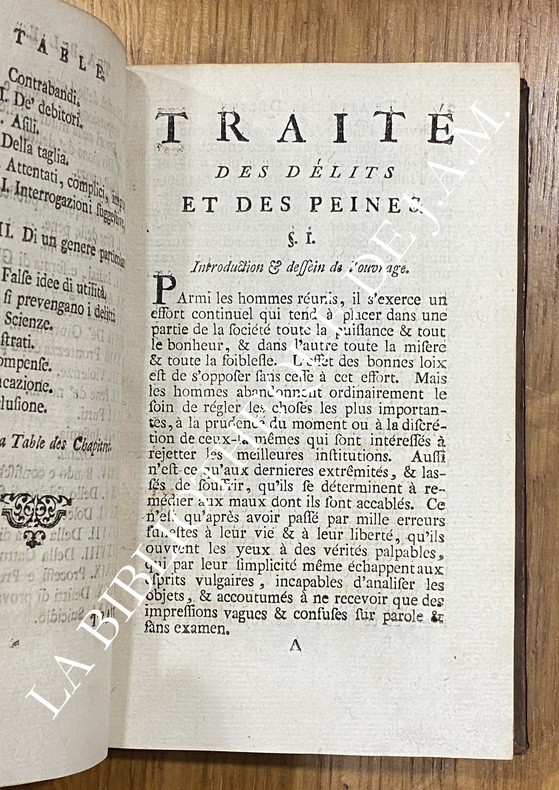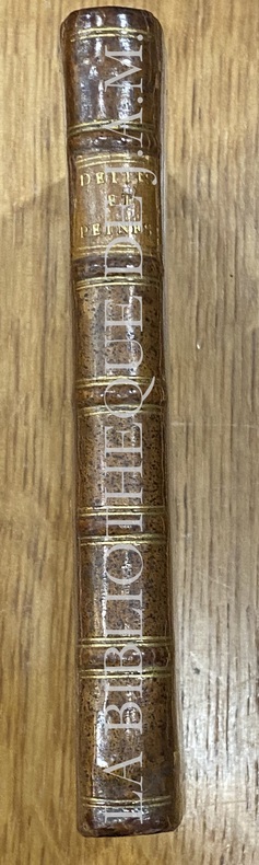 Philadelphie, 1766, 170x100mm, XXXVI- 239pages, Relié à la suite: Observations sur un Ouvrage traduit de l’Italien qui a pour titre Traité des délits et des peines, Amsterdam chez Marc-Michel Rey, 1767, 64 pages.Relié demi-veau de l’époque, pièce de titre, filets dorés, plats frotté, ptit manque à l’étiquette de titre, autrement bon état.