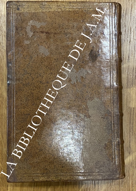 Petit in-12, plein cuir de l'époque, dos lisse orné, titre de tomaison marocain rouge, toutes tranches rouges, 239 pages, petite épidermure sur le plat arrière ainsi qu'un tout petit manque en bas à gauche du même plat, intérieur très frais. Amsterdam, chez E. van Harrevelt.