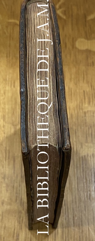 In-12 (16 × 10,8 cm),plein cuir marbré toutes tranches rouges, dos lisse richement orné, titre doré, intérieur frais, bas des pages de la table jaunie, environ 239 pages. Manques de cuir caisson haut du dos ainsi qu' a la charnière basse du plat de devant, manque aux coins haut, fissure haute au mors du plat de devant. A Philadelphie.