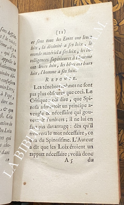A Genève [Paris], chez Barrillot & Fils, 1750 - A Genève, chez Antoine Philibert, 1751 - A Berlin, s.é., 1751. 3 vol. reliés en un vol. in-12 (167 x 103 mm) de 207 pp. ; 173 pp. et 1 f. de catalogue éditeur in fine ; 1 f. n.fol. et 76 pp. Reliure début XIXème de demi-chagrin glacé havane, filet et filet sinusoïdal verticaux à froid portés sur les plats, dos lisse orné de filets dorés, roulettes dorées et à froid, titre doré, palette dorée en tête et queue.