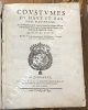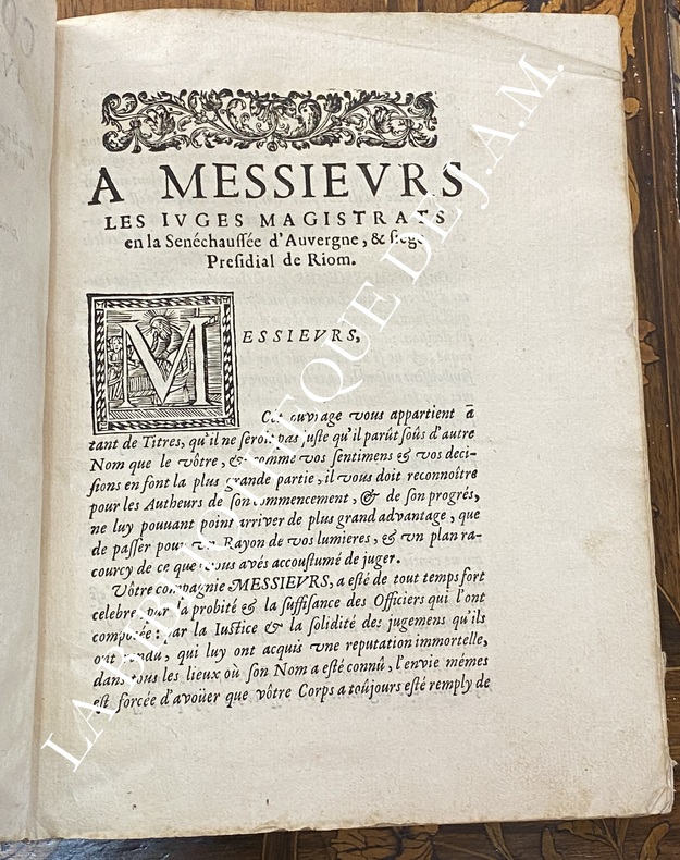 Un volume in-4°, reliure d'attente, exemplaire complet en deux parties : Coutumes générales (jusqu’à p. 439 avec « FIN »). Coutumes locales + procès-verbal complet signé par Jean Perthuis, greffier au Parlement de Clermont. Quatrième et dernière édition revue par Guillaume Consul, la plus complète et la plus fiable des coutumes d’Auvergne au XVIIe siècle. Source essentielle pour l’histoire du droit coutumier avant la Révolution. Jean Barbier - Clermont.