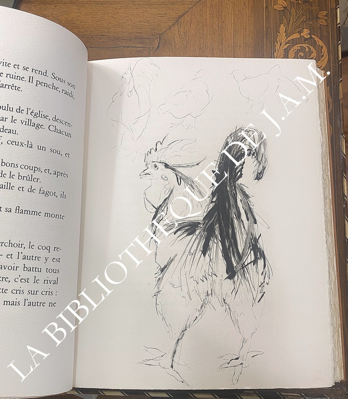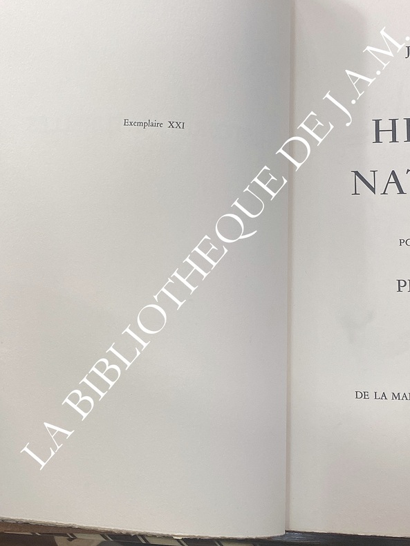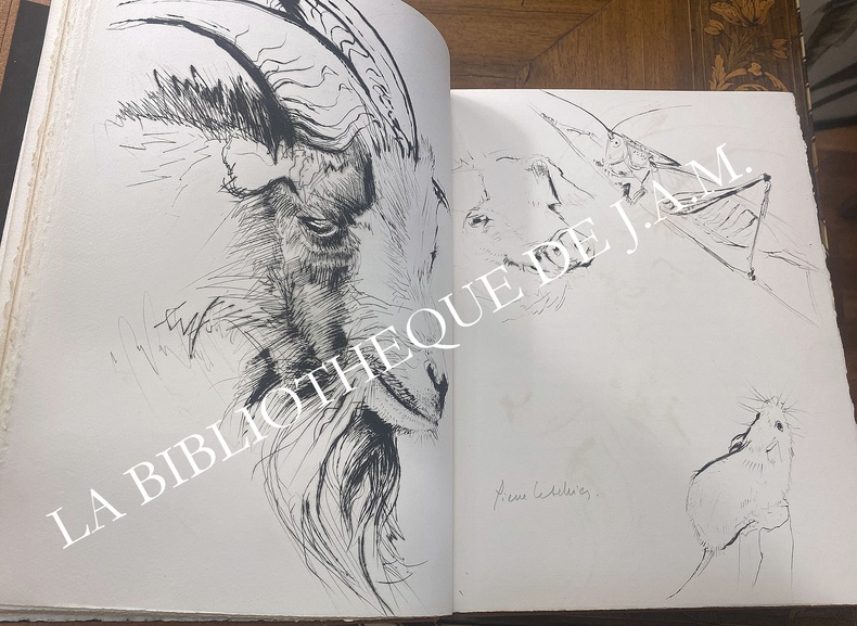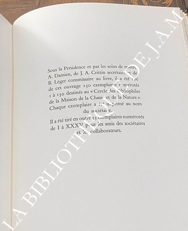 Fort grand infolio (39x31 cm), reliure d'art Chr . Grégoire, sous emboitage, 148 pages, Pointes sèches originales de Pierre Letellier. Tirage limité à 150 exemplaires numérotés, le XXI un des XXXIV réserver aux amis des sociétaires et collaborateurs 148 pages. Dos légèrement insolé. Cercle des Bibliophiles de la Maison de la Chasse et de la Nature. Paris.