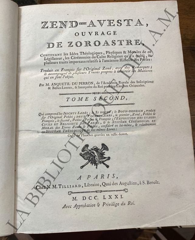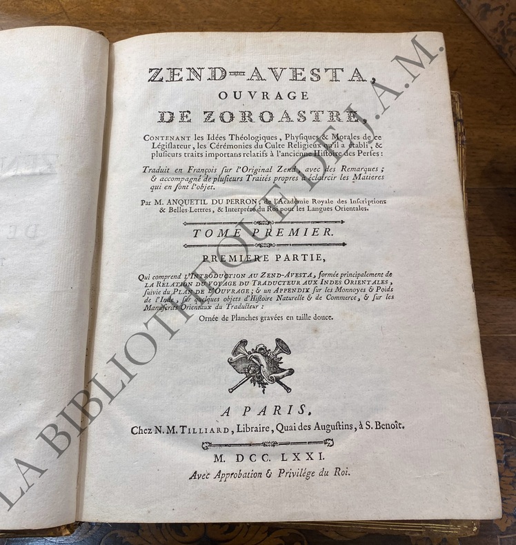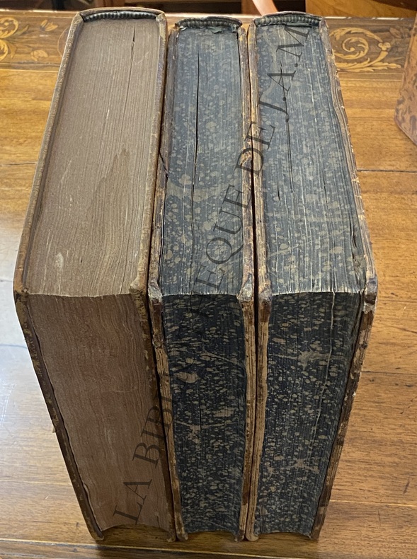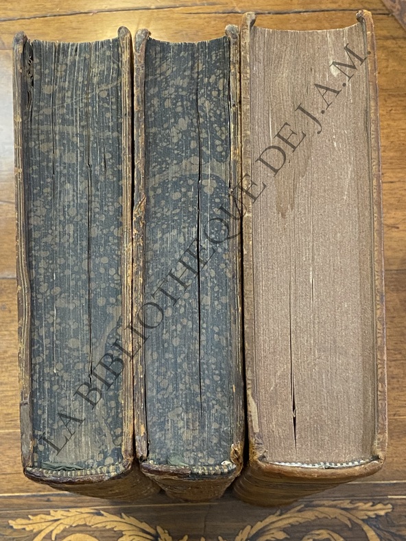 Édition originale, Deux parties en trois volumes dépareiller, in-4, plein cuir marbré pour les deux volumes de la première partie, vaux blond pour le deuxième et dernier volume, dos a nerfs, épidermure manque aux coins, quelques rousseurs dans la deuxième partie de l'ouvrage, traces de mouillures claires, dans la troisième partie de l ouvrage . Intérieur frais.
