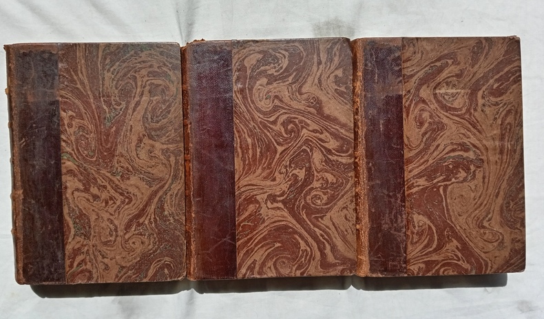 Bords, plats et dos frottés. Tranches un peu salies. Bords insolés. Petites pliures sur les coins. 1 petite déchirure sur le bord de la page de faux-titre du tome 3. Très bon état par ailleurs. Intérieur frais.