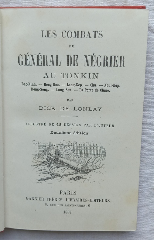 11,5 cm x 18 cm, 164 pp, illustré de 48 dessins de l'auteur, reliure pleine percaline, ornements et titres dorés dans un encadrement noir sur le 1er plat, titres dorés sur le dos, 3 tranches dorées.