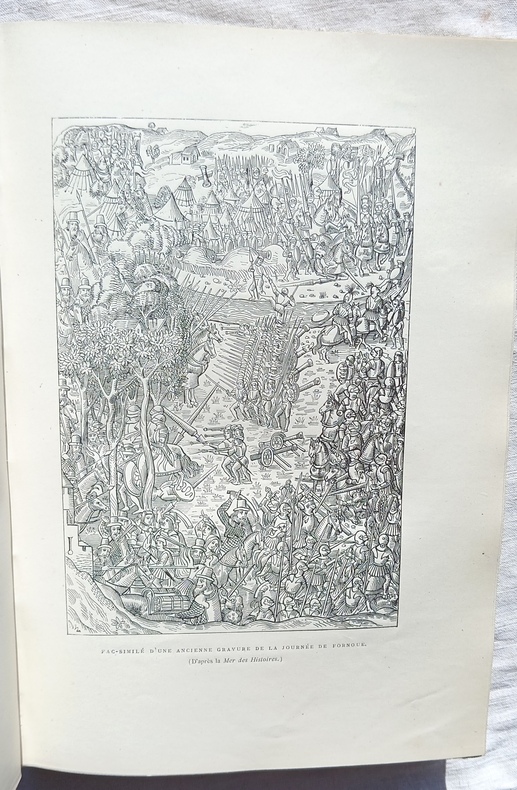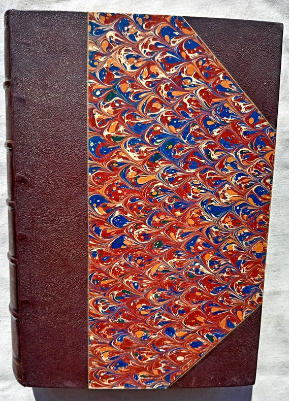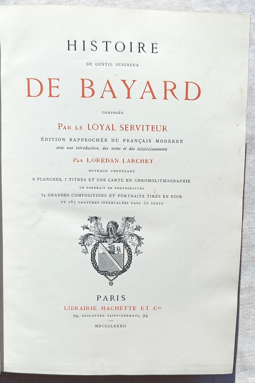 1 vol, in-4 (19,5 cm X 20,6 cm), 540 pp, ouvrage contenant 8 planches, 3 titres et une carte en chromolithographie, un portrait en photogravure, 34 grandes compositions et portraits tirés en noir et 187 gravures intercalées dans le texte, reliure dos et coins cuirs, dos à 7 nerfs, titres dorés