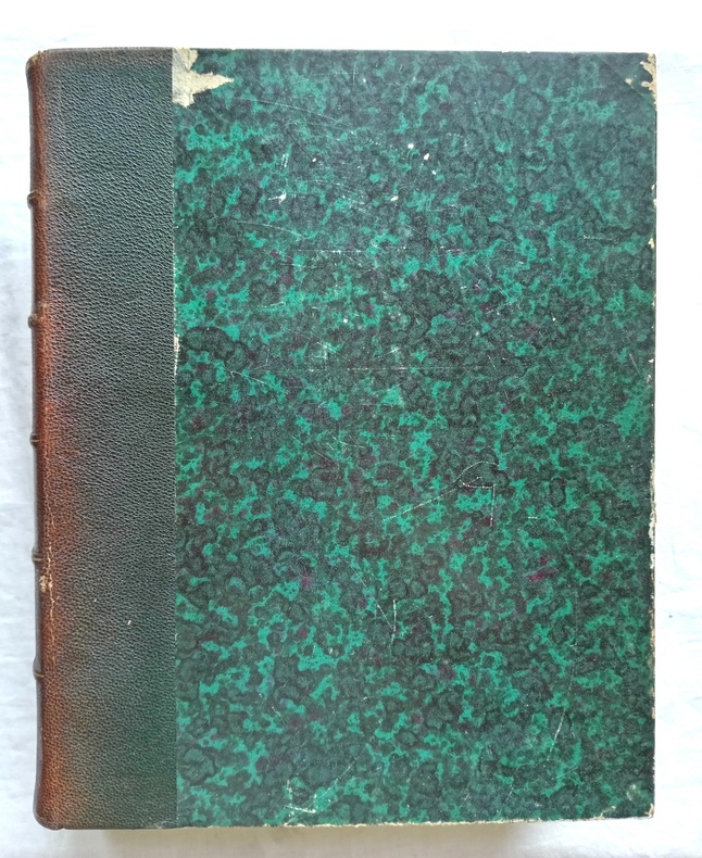 22,5 cm X 27,9 cm, 616 pp + 592 pp + 112 pp + 112 pp + tables, reliure demi cuir. Signet.