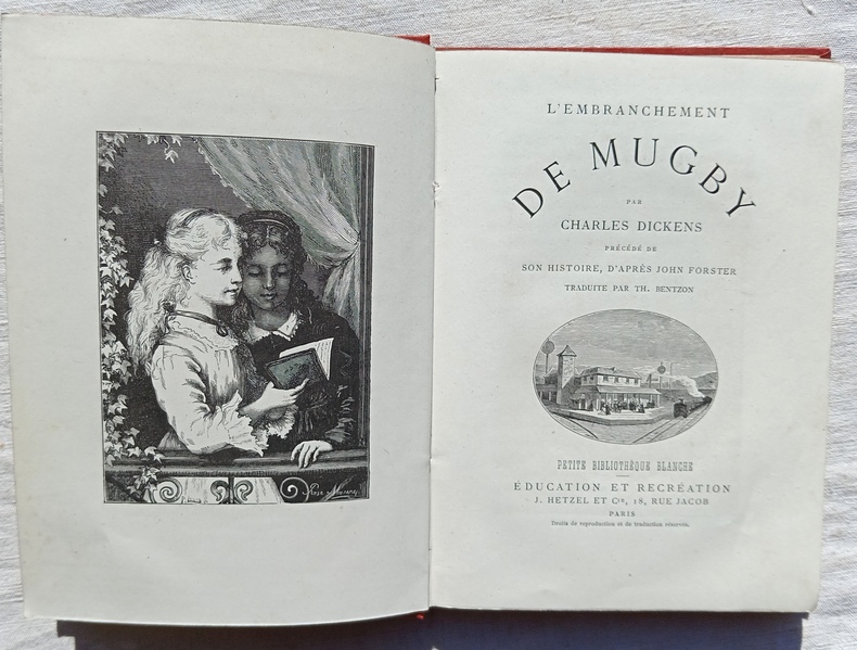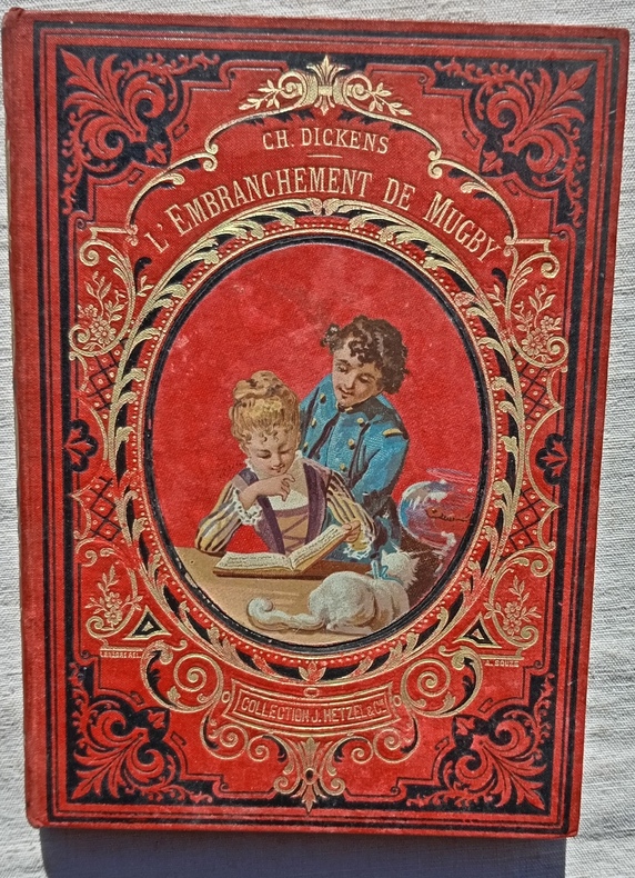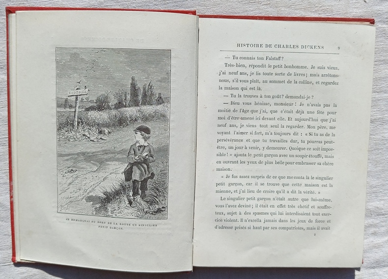 Petit in-4 (14,3 cm X 19,8 cm), 128 pp, reliure cartonnée d'éditeur pleine percaline, ornée sur le 1er plat d'une illustration couleurs dans une vignette noire et dorée le tout dans encadrement noir et doré. Ornements noirs et dorés, avec titre doré sur le dos. 3 tranches dorées. Contre plats et pages de garde bleus. Nombreuses illustrations N&B (frontispice, vignettes, bandeau et planches)