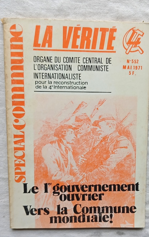 (Revue), La Vérité - organe du comité central de l'organisation communiste internationaliste pour la reconstitution de la 4e internationale -, n°552, Mai 1971 : "Le 1er gouvernement ouvrier - Vers la Commune mondiale !" : Marx et la Commune / La Commune, le Front unique et les libertés... Sommaire complet sur simple demande. 15 cm X 22 cm, 112 pp, couverture souple illustrée. Broché.