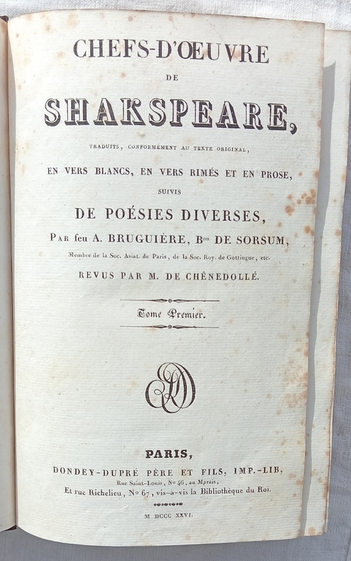 Petits accrocs sur la reliure. Coins frottés. Nombreuses rousseurs. Bon état par ailleurs.
