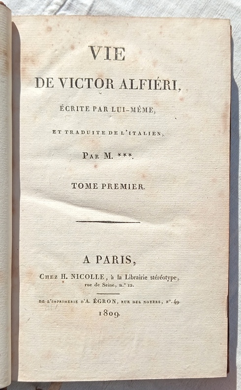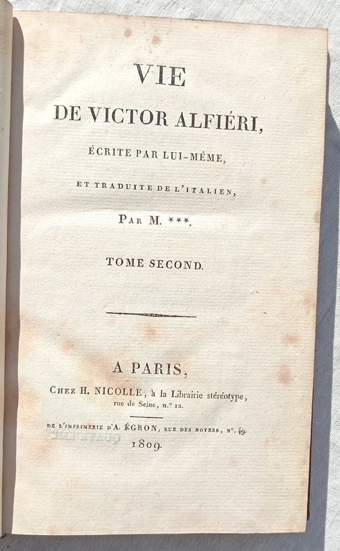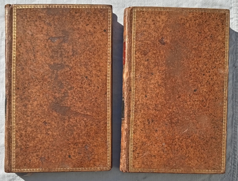 2 vol, in-8 (12,8 cm X 20,5 cm), VIII+288 pp + 530 pp, (dont pièces justificatives et tables), reliure plein veau marbré, dos lisse, plats ornés d'un filet doré, pièces de titre et ornements dorés sur les dos, 3 tranches marbrées. Signet. Contres plats et pages de garde marbrées.