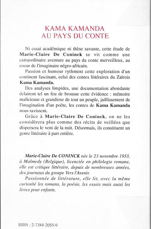 Etude sur les contes du Zaïre. Broché 203 pages, Editions L'Harmattan 1993. Bon état