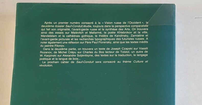 Lausanne, Editions l'Age d'Homme, 1990; in-4, 281 pp., br. SAUF-CONDUIT n°2 - très bon état.