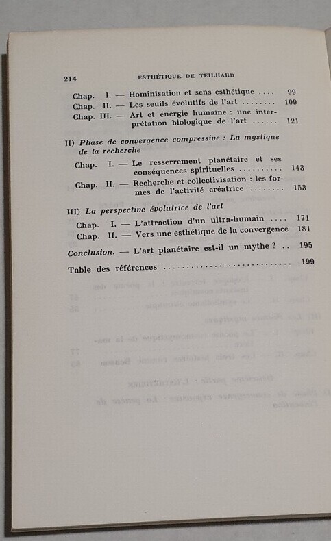 Editions Universitaires - Bibliothèque de Teilhard 1963. Broché 214 pages. 2 plis sur le dos, sans incidence : reliure cousue. Bon état