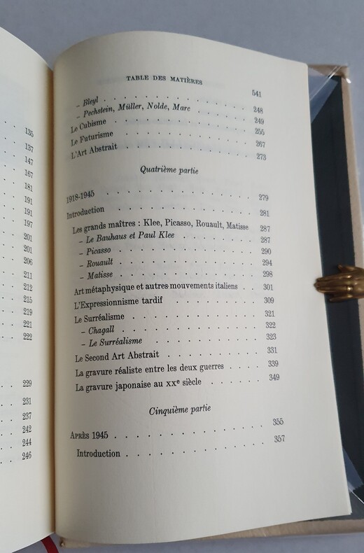 Jean De Bonnot Fort In-8°, reliure originale aux plats illustrés en noir formant une reliure minimaliste et élégante ( le néo cubiste Avolta) tête dorée, 542 pages, ex Libris, signet, et un répertoire bio-bibliographique de 1874 gravures à pleine page.Très Bel exemplaire