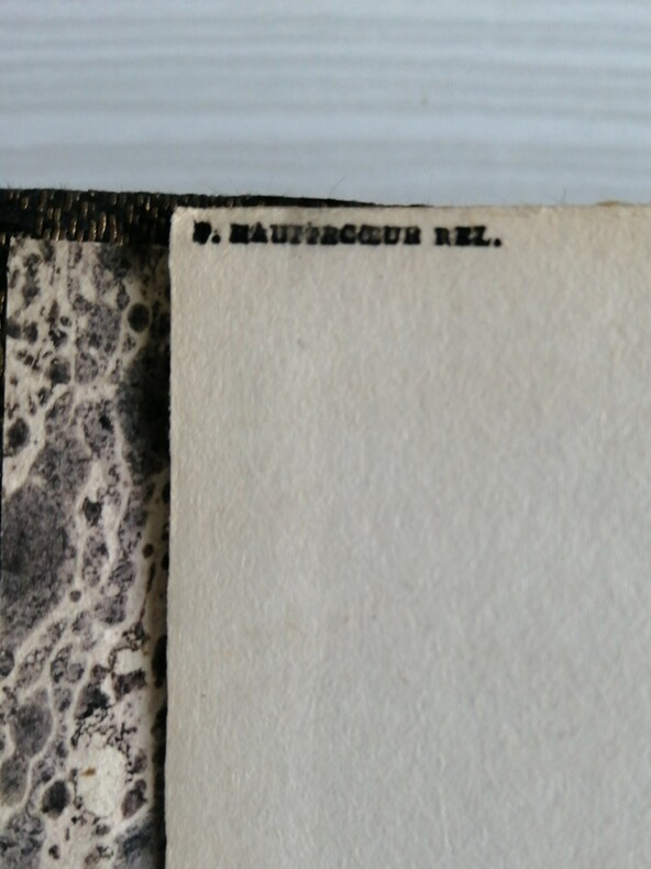 S.l.n.n., s.d. 2 plaquettes en 1 vol. in-12°, 65 (p. 136-195), 38 (p. 130-167) pp., 1 pl. (bandes de renfort d'origine sur qqs pages, corrections apportées au texte au moyen d'étiquettes, petit manque en gouttière à une page). Reliure plein skai marron, plat sup. et dos titrés dorés, tranches dorées, bon état dans l'ensemble (tampon ex-libris ésotérique sur la garde bl. sup.).
