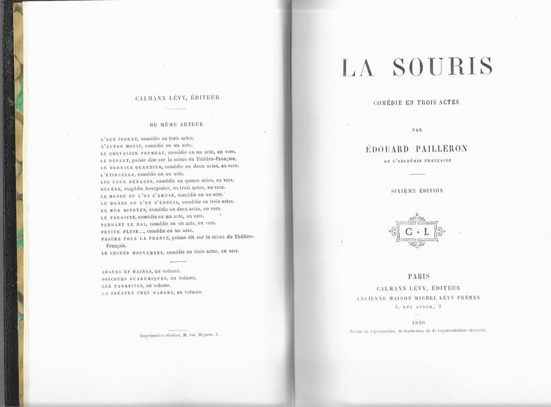 Relié 1/2 cuir à la Romantique, percaline sur les plats, encadrement de filets à froid. Reliure à 5 nerfs ornés de filets dorés. Calmann Lévy 6ème édition,189 pages, réimpression de l'édition de 1888. Petites rousseurs sur la tranche et 3 taches claires en page 1.