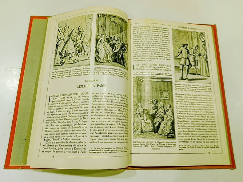 livre moliere état moyen, nettes traces d'usure sur couverture carton, interieur impeccable, 64 pages, nombreuses illustrations noir et blanc, editions librairie hachette 1925