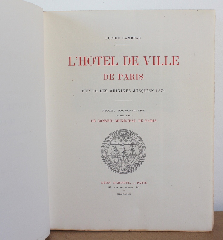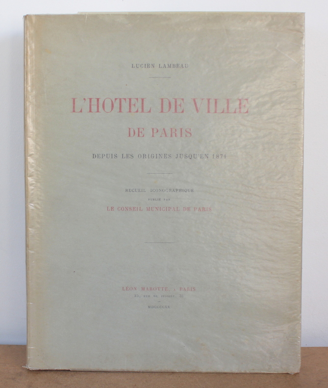 L’hôtel de ville de Paris, depuis les origines jusqu'en 1871, Recueil iconographique publié par le conseil municipal de Paris de Lucien Lambeau chez Léon Marotte en 1920. Le livre est illustré de 91 planches. Le livre mesure 28x37 cm et pèse 3,300 kg (c) pour 172 pages + planches. Reliure d'éditeur souple, Broché. Le livre est en très bon état.