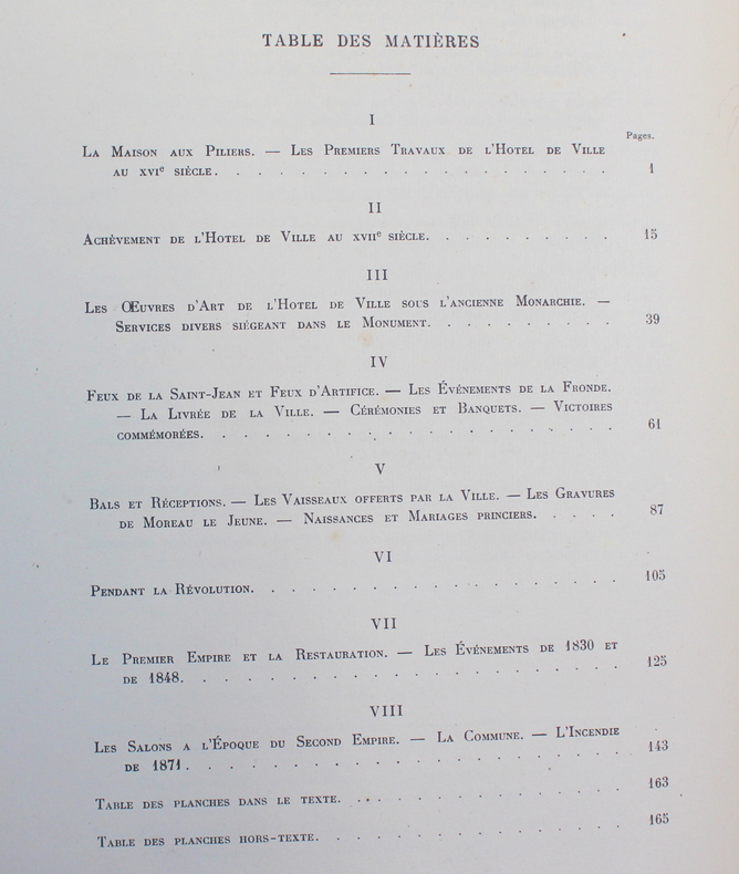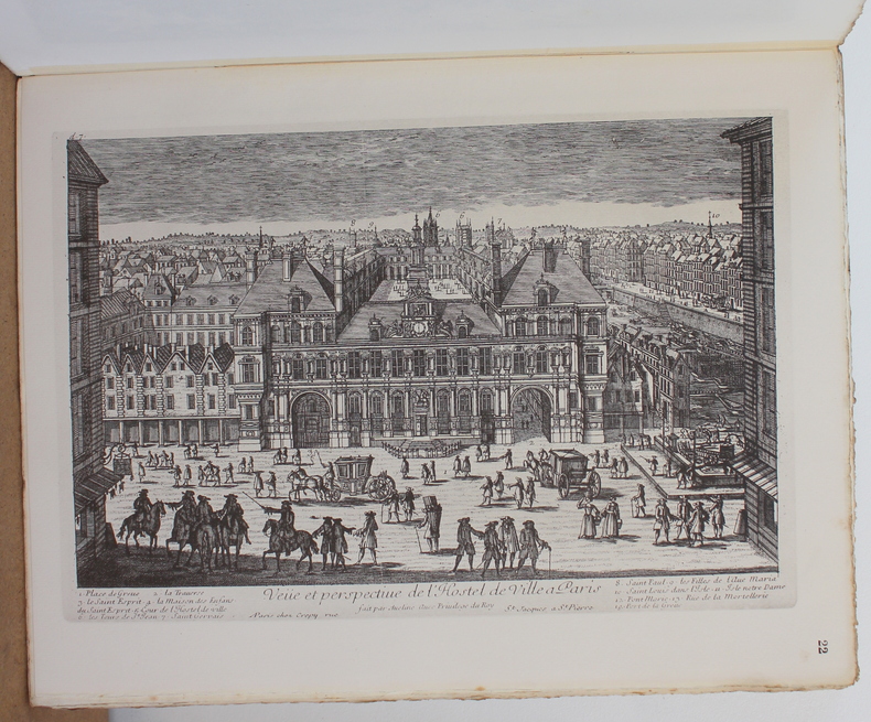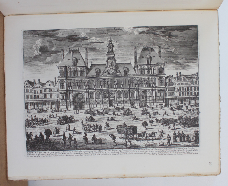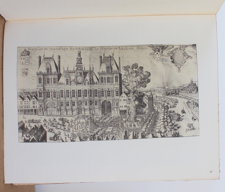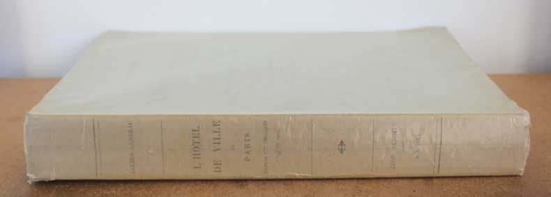 First edition. A lovely copy of this history of the Paris town hall. Simple half leather binding with marbled boards. There is rubbing to the edges of the boards, with slight loss to the marbled paper, and a touch of staining to the leather, but still attractive. With 91 engraved plates, some in colour. (Complete). Weighs 4.5kg. viii, 171, [v], 91. pages. 37cm x 29cm.