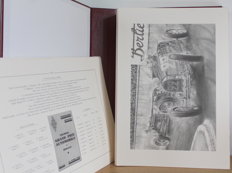 Album exceptionnel retraçant l'histoire du Grand Prix de Formule 1 de Monaco jusqu'en 1996. 54 cahiers de 4 pages comprenant; le dessin de la voiture vainqueur de l'année, le classement, la grille de départ, l'affiche de la course et le le commentaire de José Rosinski