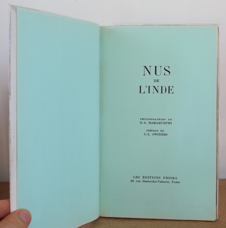Nus de l'Inde de préface de J. L. Swiners aux éditions Prisma en 1966. Le livre est illustré de photographies de D.S. Ramamurthi. Le livre mesure 15x24 cm et pèse 0,300 kg, non paginé. Reliure d'éditeur souple avec jaquette, Broché sous plastique. Le livre est en état d’usage, très bon, quelques pages plié à cause des doubles pages.