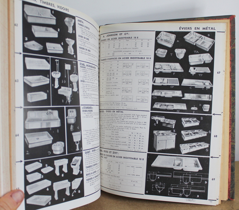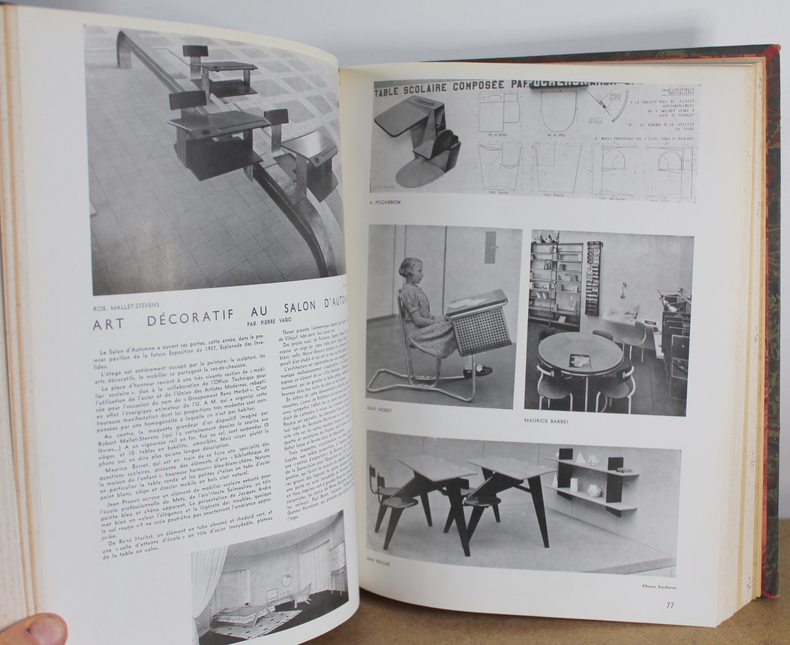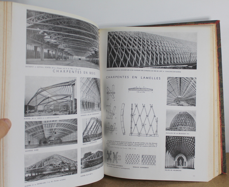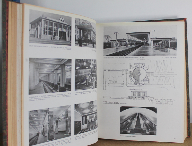 8- sur les gares, voir le sommaire complet en photo, avec notamment quatre pages sur la gare du Havre (Pacon), cinq pages sur la gare de l'est à paris Paris, six pages sur la nouvelle gare de Florence (Mazzoni), trois pages sur la gare de Genève Cornavin (Flegenheimer), deux pages sur les halls de gare, neuf pages sur les métros, etc. 9- "Gares maritimes et aériennes", voir le sommaire complet en photo, avec notamment cinquante-quatre pages sur les aéroports (avec des illustrations sur Le Bourget, Orly, Le Touquet, Milan, Bruxelles, Gatwick, Anvers, Detroit, etc.), vingt-six pages sur les constructions et gares maritimes (avec des illustrations sur Marseille, Gènes, Oran, Alger, Le Havre - pour le paquebot Normandie, etc.), six pages sur le Pavillon du club d'aviation Rolland Garros à Buc (Beaudouin et Lods, Jean Prouvé), etc. 10- avec notamment dix-sept pages sur des Hôtels des PTT (Arch. Roux-Spitz, Azema,.), cinq pages sur des églises (Arch. Azema, Bartning,.), neuf pages sur la casino de Bexhill (Arch. Mendelsohn et Chermayeff), deux pages sur le Salon d'automne (Herbst, Prouvé, Royere,.) 11- Architecture industrielle, Grandes portées 12- "Salles de bains - buanderies - cuisines", voir le sommaire complet en photo, avec des illustrations d'installations dans des constructions de Demaret, Bechmann, Ginsberg, Elkouken, Mallet Stevens, Pierre Barbe, Perret, De Koninck, etc. - et un répertoire de vingt-neuf pages de l'appareillage sanitaire et de l'équipement ménager.