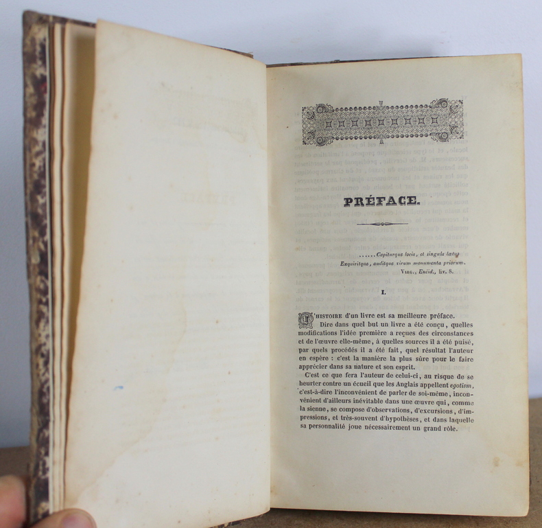PRÉFACE. L'histoire d'un livre est sa meilleure préface. Dire dans quel but un livre a été conçu, quelles modifications l'idée première a reçues des circonstances et de l'œuvre elle-même, à quelles sources il a été puisé, par quels procédés il a été fait, quel résultat l'auteur en espère: c'est la manière la plus sûre pour le faire apprécier dans sa nature et son esprit. C'est ce que fera l'auteur de celui-ci, au risque de se heurter contre un écueil que les Anglais appellent egotism, 'c'est-à-dire l'inconvénient de parler de soi-même, inconvénient d'ailleurs inévitable dans une œuvre qui, comme la sienne, se compose d'observations, d'excursions, d'impressions, et très-souvent d'hypothèses, et dans laquelle sa personnalité joue nécessairement un grand rôle. Accoutumé par un assez long enseignement littéraire et historique à vivre dans le passé, dans les trois grandes civilisations de la Grèce, de Rome et du Moyen-Age, préparé par ses lectures, surtout par les Mémoires et les entretiens de l'antiquaire qui est le père de notre histoire locale, et le type scientifique proposé à l'imitation de ses successeurs, M. de Gerville, prédisposé par le sentiment des beautés artistiques du passé, et du charme poétique que les ruines et les monumens ajoutent aux paysages, sollicité surtout par le besoin de connaître intimement cette époque merveilleuse et complète du Moyen-Age dont nous sommes les fils, et dont les ossemens épars appellent la main qui recueille et conserve, qui palpe les fragmens et reconstitue le corps entier, l'auteur fut reçu (1840) membre d'une société d'archéologie, dans une localité vivante de souvenirs, semée de monumens antiques, et qui serait encore remarquable entre toutes, quand elle n'aurait que la merveille du Mont Saint-Michel. Pour remplir un devoir et satisfaire un goût prononcé, il résolut de décrire les monumens religieux du pays, et adopta pour cadre le cercle de l'arrondissement d'Avranches, ou à peu près l'Avranchin proprement dit. Il partit donc avec le bâton du voyageur et le carnet du touriste, et pendant trois ans, dans ses jours de congé et ses vacances, seul ou accompagné d'un ou plusieurs de ses élèves, il visita dans ses plus petits recoins le pays riche en paysages et en antiquités qu'il s'était proposé d'explorer. Il fit ainsi près de deux mille lieues, et si quelquefois il trouva que son monde était grand, et son voyage plein de soucis et de préoccupations, il prit courage en pensant à son but et en jouissant de toutes les beautés du pays, de tous les souvenirs de l'histoire, de tous les charmes des ruines et des monumens. Cette vie nomade, pleine d'accidens imprévus, et si bien remplie d'idées et de sentimens, il en garde le souvenir comme un précieux trésor, et, s'il lui est permis de parler d'autre chose que de ses travaux, il peut dire que cette période a été une des plus heureuses de sa vie....