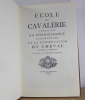 2 volumes in-8 (19,5 x 12 cm), veau fauve marbré (reliure de l'époque), dos lisse décoré de caissons fleuronnés, pièce de titre de maroquin brun, tomaison brunie, filet sur les coupes, tranches rouges, [16]-319-1 bl. ; [4]-299-1 bl. pages (complet). Petits frottements, deux mors fendus (3 cm), exempt de rousseurs. Bon état tout de même. Nouvelle édition de ce classique de l'équitation et de la chasse. Édition illustrée d'1 portrait, d'1 titre gravé, et de 33 planches gravées par Parrocel. Cet ouvrage rassemble et met en ordre les principes qui peuvent faciliter aux amateurs de la cavalerie la connaissance de tout ce qui se rapporte à ce sujet. Cet art renferme trois principes essentiels qui sont : la connaissance du cheval, la manière de le dresser et son entretien. Provenance : tampon humide au titre "C.B.". Très bon exemplaire.