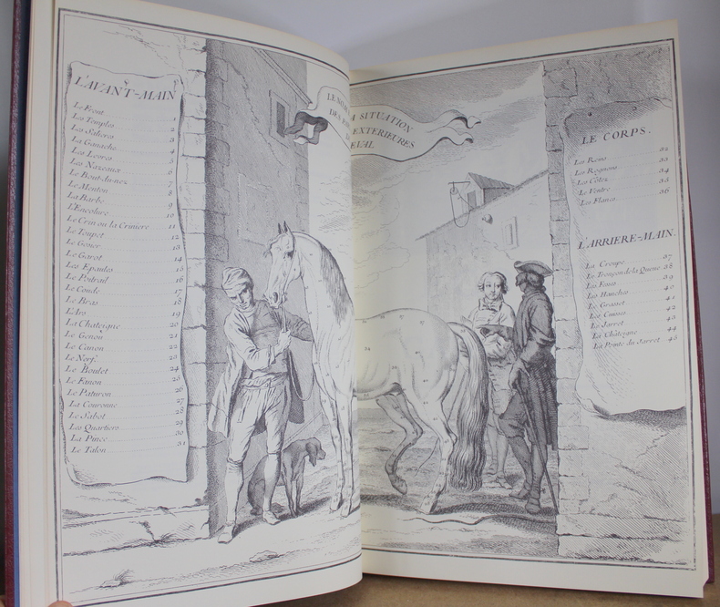 37 planches gravées (frontispice et portrait compris), dont 6 dépl., les planches intitulées "les noms et la situation des parties extérieures du cheval" et "Maladies du cheval" se trouvent en double dans notre exemplaire, le tome II contient le Traité des haras (Ménnessier de La Lance II, 28).