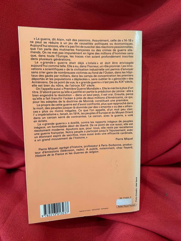 Fayard 1983 663 pages in8. 1983. Broché. 663 pages. un tampon La guerre dit Alain naît des passions. Assurément celle de 14-18 ne peut se réduire à un jeu de causalités politiques ou économiques. Aujourd'hui encore elle n'a pas fini de susciter des réactions passionnelles que l'on parle des mutineries françaises ou des crimes de guerres allemands. On ne met pas impunément en ligne des millions d'hommes sans que dans toute l'Europe les traces n'en soient profondément inscrites dans plusieurs générations.La grande guerre était déjà totale et doit être envisagée aujourd'hui comme telle. Elle a eu dans l'horreur un rôle pionnier. Les innovations scientifiques de la civilisation industrielle ont permis d'envoyer sans crier gare de nombreuses victimes au fond de l'Océan dans les hôpitaux des gazés par milliers dans les camps de concentration les premiers déportés et les populations déplacées sans oublier le génocide des Arméniens. De ce point de vue la Grande Guerre n'est pas du XIXème siècle elle est bien du nôtre de l'atroce XXème siècle.On l'appelle aussi Première Guerre mondiale . Elle le mérite à plus d'un titre. D'abord parce qu'elle a justifié en partie la prédiction de Lénine : elle a bien engendré la révolution - dans un seul pays il est vrai. Ensuite parce qu'elle a fait franchir l'océan à près de deux millions d'Américains ce qui pour les adeptes de la doctrine de Monroë constituait une première.Le propre de cette guerre est d'avoir confronté plus que rapproché dans la mort des peuples jusque-là dominés par des empires ou des alliances plus ou moins inégales. Ce que l'on appelle d'un mot peu clair l'impérialisme tenait en 1914 les peuples d'Europe et du Moyen-Orient dans un carcan serré de contraintes. Le carcan avec la guerre a volé en éclats.La Grande Guerre a éveillé contre les rapports inégaux de peuples inégaux un formidable désir de liberté. De ce point de vue aussi elle est résolument moderne. Ajoutons que pour nous elle reste par excellence une guerre française. Notre peuple a participé jusqu'à l'épuisement avec un étonnant esprit de sacrifice mais aussi avec une efficacité cardinale à un grand mouvement de l'Histoire