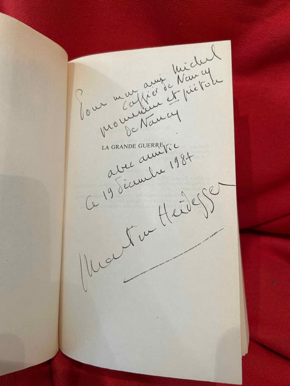 Paris, Fayard, 1984 ; in-8, 667 pp., broché, couverture à rabats. Envoi amusant de l'auteur qui signe en plaisantant du nom de Martin Heidegger.