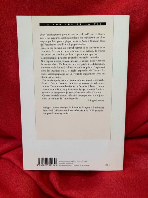 Coll. "La couleur de la vie", Paris, Seuil, 1998, in-8, br., couv. ill. coul. éd., 256 pp., ill. en noir, Quel est le but d'écrire son autobiographie ? Et surtout comment s'y prendre ? Très bon état