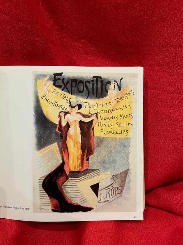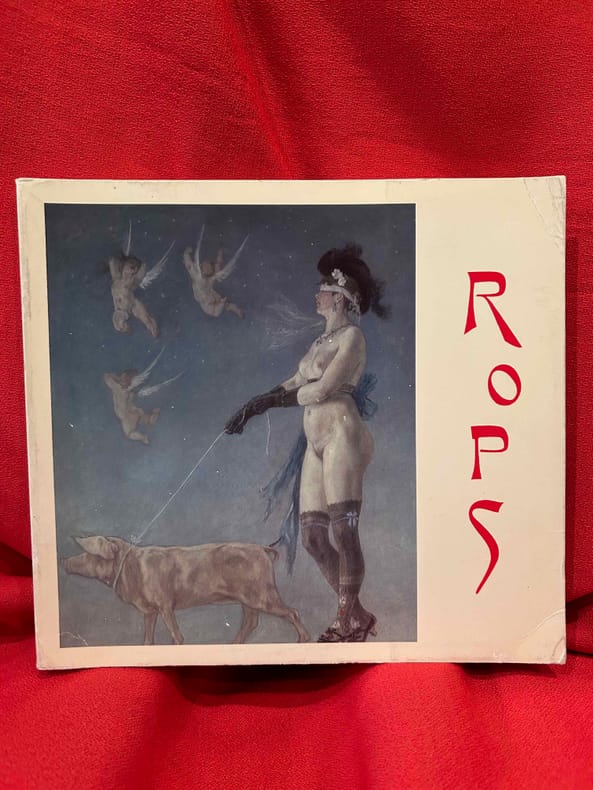 Edition originale sur papier d'édition (après 5 Chine, 5 Japon et 10 Hollande). Étienne Morannes n'est autre que l'alias de Claire Rops, fille de l'artiste et Madame Demolder depuis 1895. Le papier uniformément jauni comme toujours, 2 plis au second plat de couv., sinon vraiment beau. Très bon état